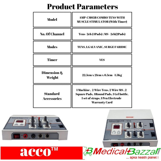 acco 2 in 1 MS+TENS 2Ch with Timer Physiotherapy Combo Machine