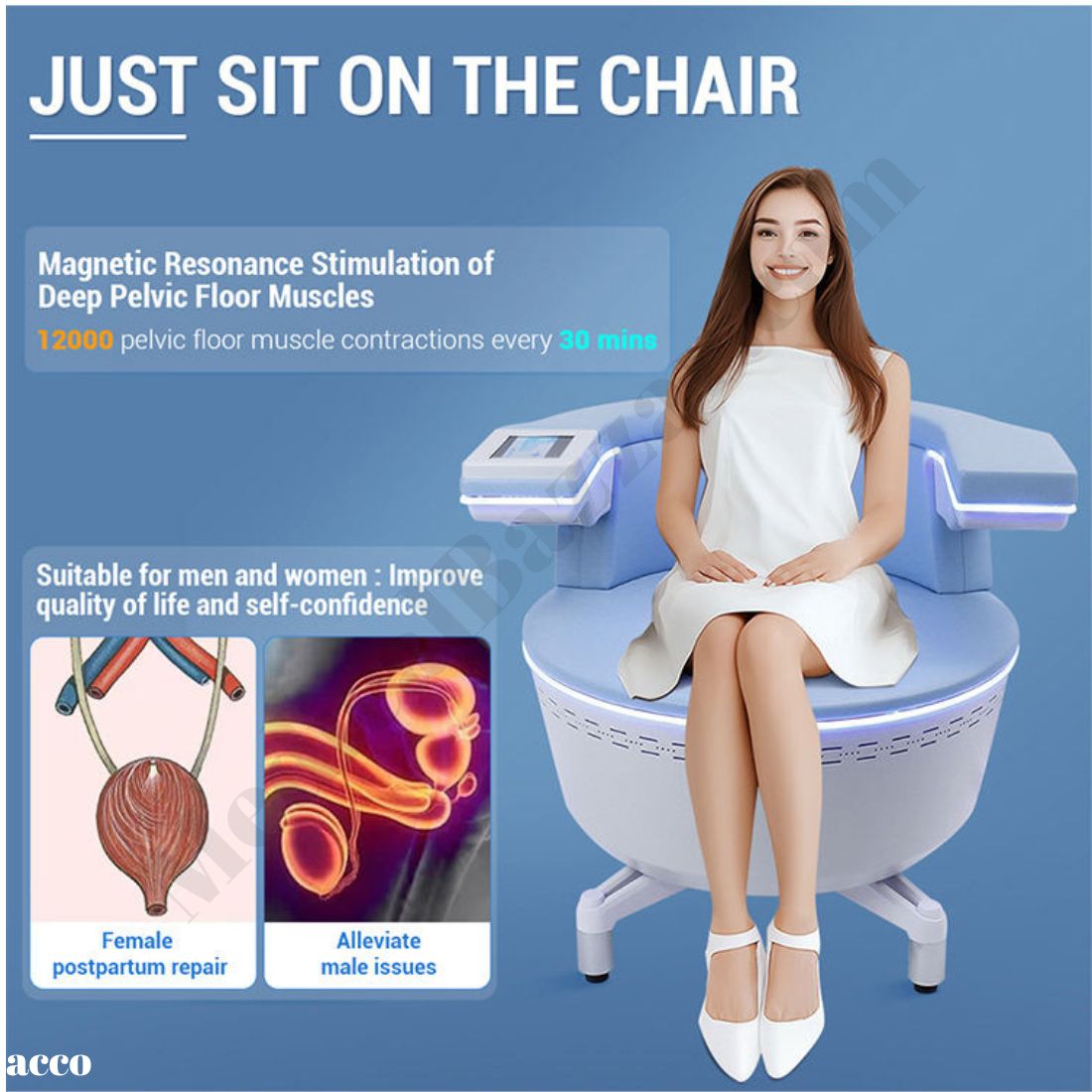 Experience the revolutionary Urinary Incontinence Chair, a cutting-edge solution designed to improve bladder control and enhance pelvic health for both men and women. This EMS (Electrical Muscle Stimulation) chair provides non-invasive treatment for urinary incontinence, effectively stimulating and strengthening pelvic floor muscles.