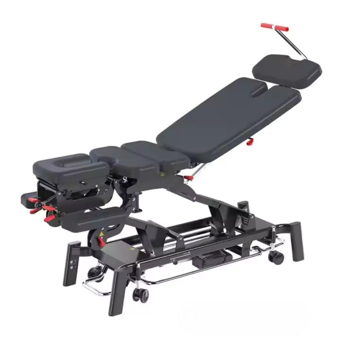 This imported chiropractic bed with spinal decompression offers precise support for effective spinal realignment and pain relief. Designed for professional use, it provides adjustable decompression to gently stretch the spine, helping to alleviate pressure on discs and nerves. Its durable construction ensures reliable performance during treatments, making it a valuable asset for clinics focused on advanced chiropractic care.