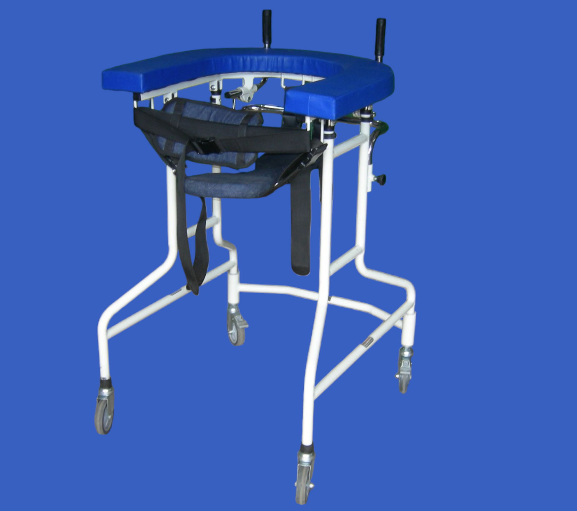 Support Walker with Seat is designed to withstand long-term personal/institutional usage by a variety of patients. The Arm-Support pad with hand grips provides full support for body weight.