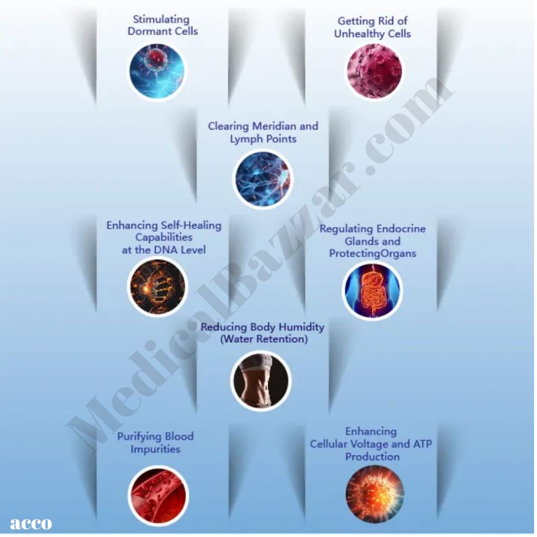 Terahertz is a band between infrared and microwave, it is the same fre-quency resonance with somatic cells hundreds of millions of vibrations persecond, terahertz light wave therapy device has penetration, recognition,can activate the inert cells and dormant cells, open up the microcirculation,promote blood circulation, moisture and cold to improve the basic bodytemperature, enhance the human body immune force! Achieve the effect ofphysical fitnessl Described by scientists as one of the top 10 technologieschanging the world, 15 minutes of terahertz physical therapy is equivalent